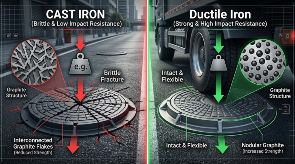 Ductile iron stands out as the smarter, future-ready solution for municipal applications, especially where load, impact, and environmental stress are significant.